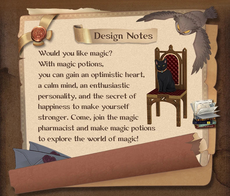 ❤️【Unique design concept】The enigmatic and magical design, let you fully immerse yourself in the fantasy magic world. In a magic house located deep within the forest, the magic apothecary is reading magic books and attempting to make medicine in an effort to master a mysterious power through magic in order to change the world, open the door to the magic world, and lead us step by step on the journey of a fantastic adventure. Crucible, potion bottle, secret room, black cat, magic book, broom, delicate and enigmatic.