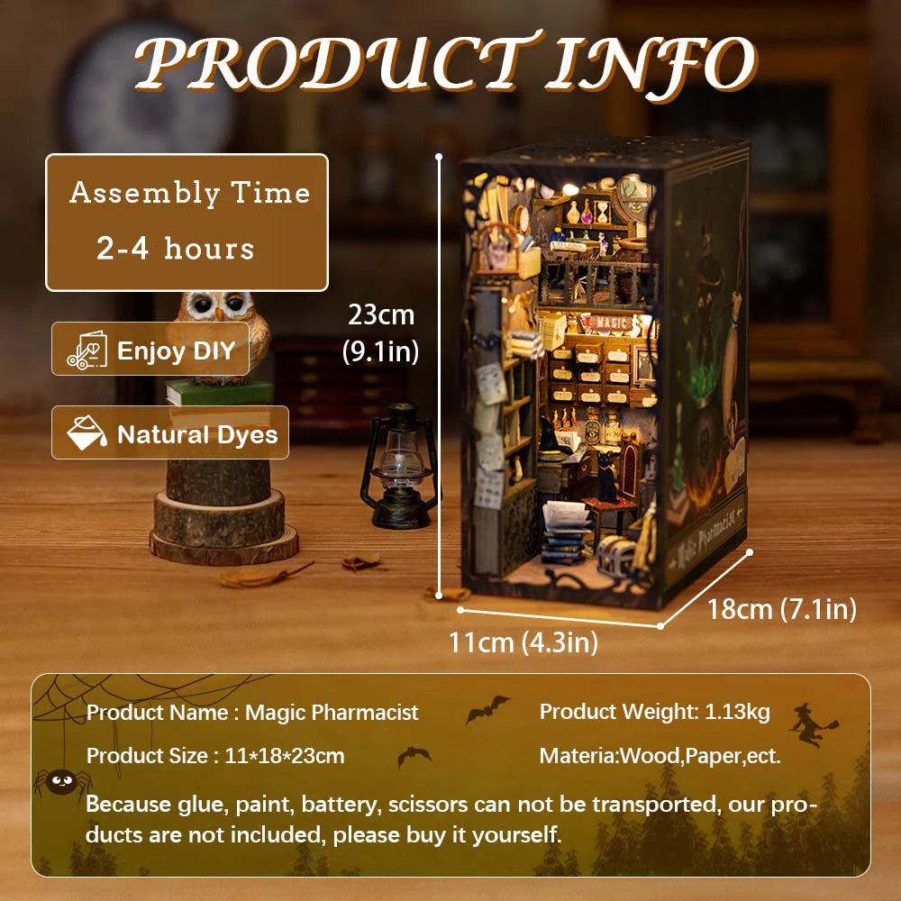 CUTEBEE DIY Book Nook Kit Miniature Dollhouse with Lights Magic Pharmacist Gift Ideas Bookshelf Insert For Birthday Gift