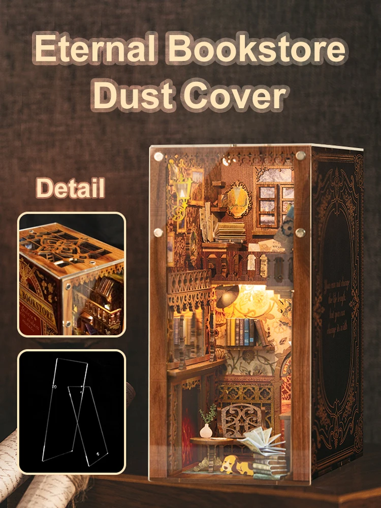 CUTEBEE DIY Book Nook Kit Miniature House Transparent Dust Cover For Eternal Bookstore Model Magnet Adsorption for Birthday Gift