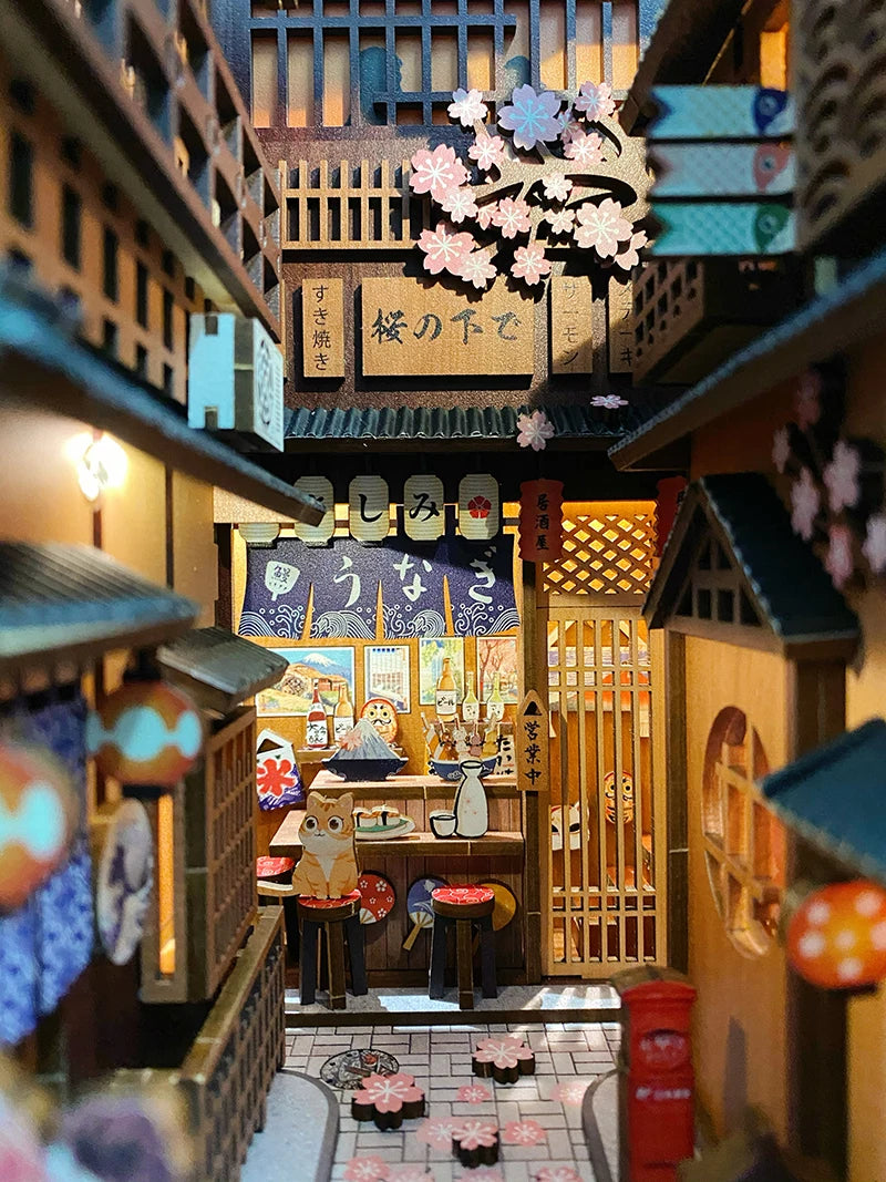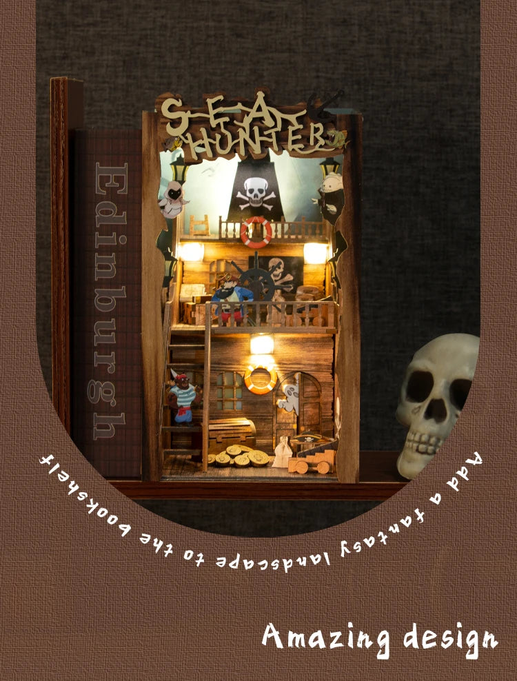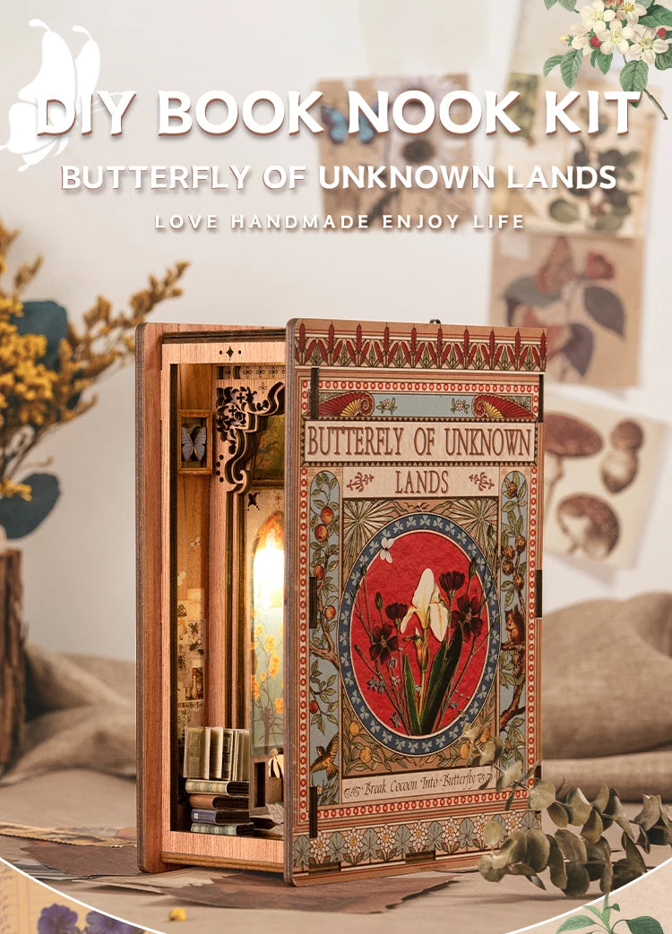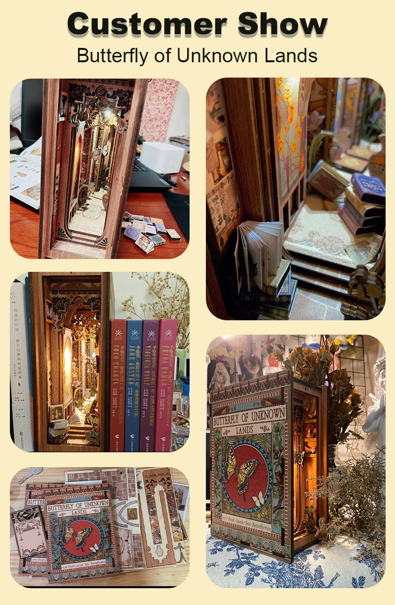 CUTEBEE DIY Book Nook Miniature House Booknook Shelf Insert Retro Eternal Bookstore Led Lights Model For Handmade Children Gifts