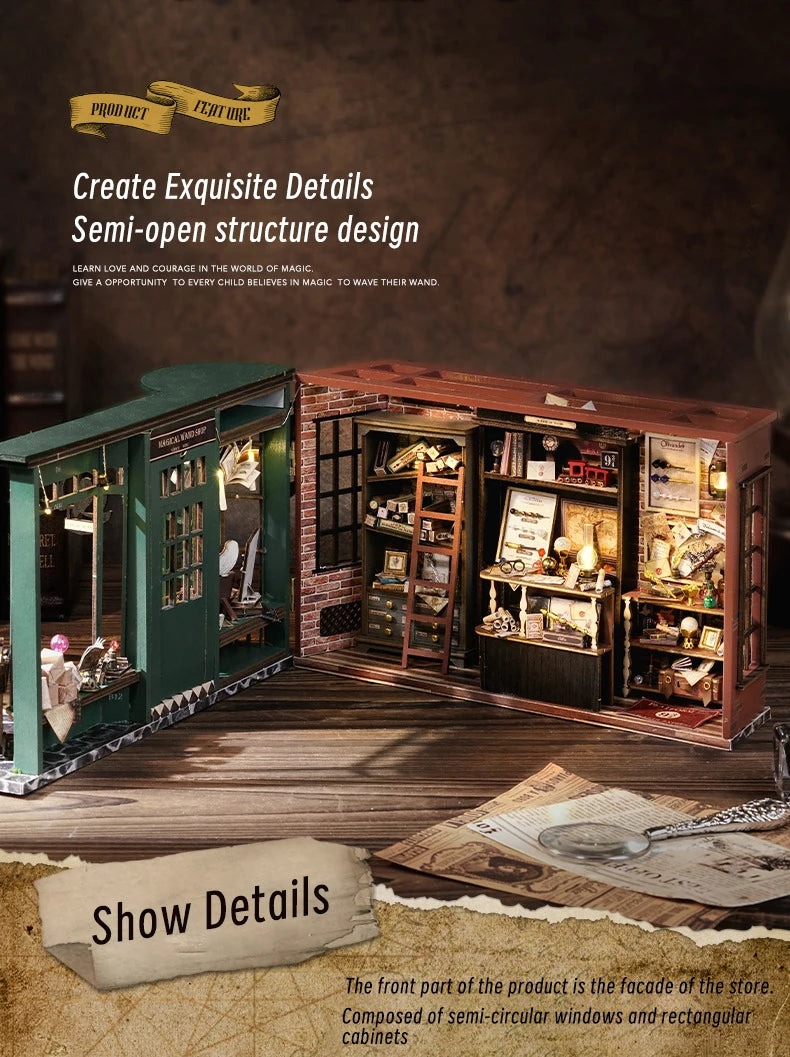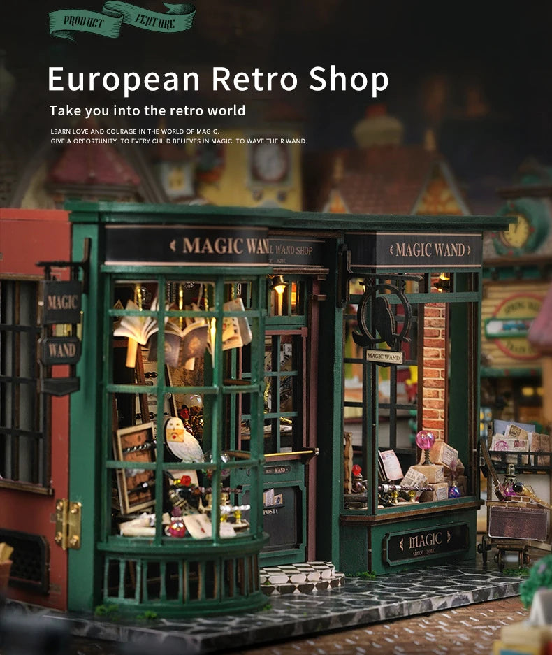 CUTEBEE DIY Wooden Dollhouse Miniature Doll House Kit with Furniture Roombox Home Model Toy for Children Gift Retro Magic Shop