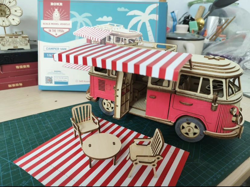 D Car Wooden Volkswagen T1 Camper Truck Puzzle Handmade DIY Wooden Assembled Model Car toy Series Boy female Gift