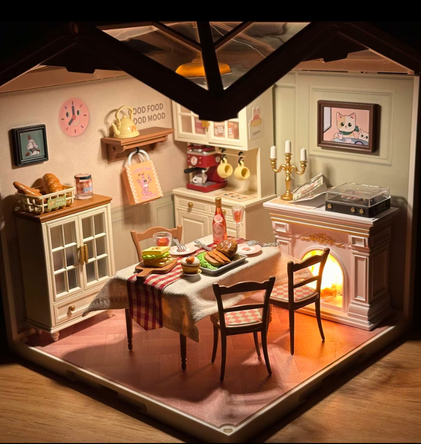 DW015 Comedor Robotime Rolife 3D Kit de construcción de rompecabezas de plástico Casa en miniatura DIY