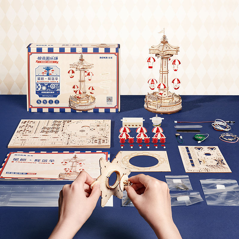 Robotime Rokr DIY Assemble Miniature Toys Music Box EA01 Kits de modelos de torre de paracaídas Rompecabezas 3D de madera para adultos
