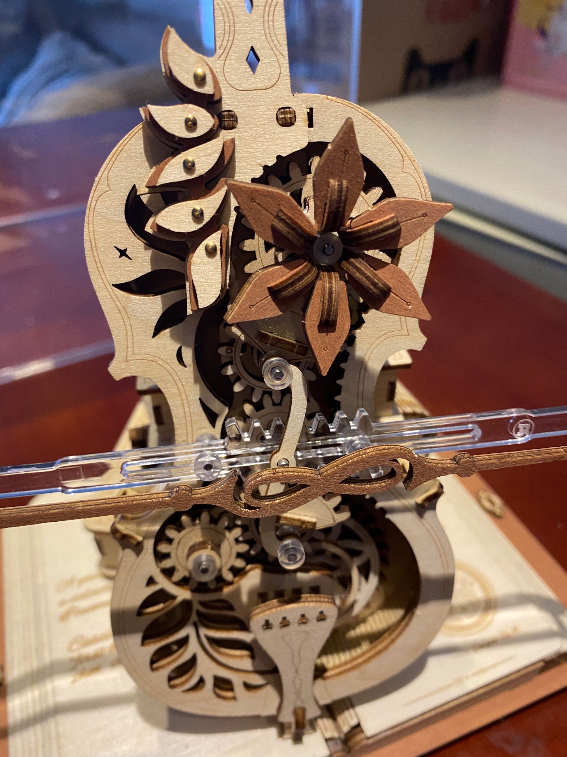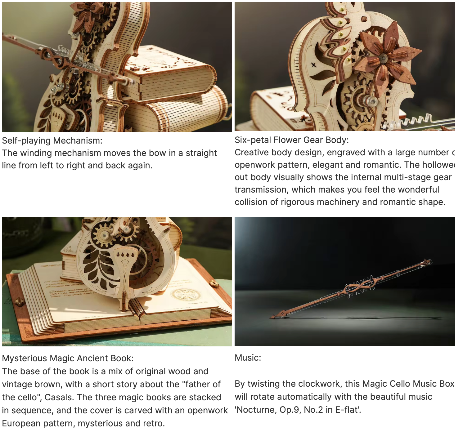 This ROKR puzzle incorporates the cello into a "mechanical music box" - as the gears turn and the melody plays, one is transported into a magical mystery.