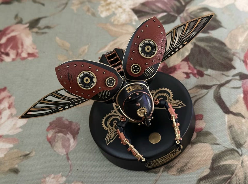 Experimente la fusión de las maravillas de la naturaleza y la estética steampunk con nuestro modelo MI01, elaborado meticulosamente e inspirado en el magnífico escarabajo rinoceronte. Cada detalle, desde la forma de su cuerpo hasta su cuerno, sus patas y sus alas, ha sido diseñado minuciosamente para capturar la esencia de esta extraordinaria criatura.