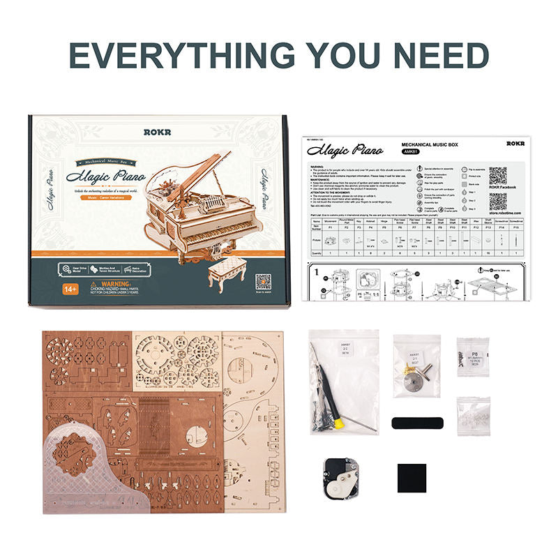 Robotime Rokr Tiktok Hot Selling Diy Toys AMK81 Magic Piano Mechanical Music Box Model Kit 3D Wooden Puzzles