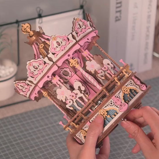 Robotime Valentines Gifts AMK62 Romantic Carousel 3D Wooden toys Diy Handmade Assembled Jigsaw Puzzle Pieces