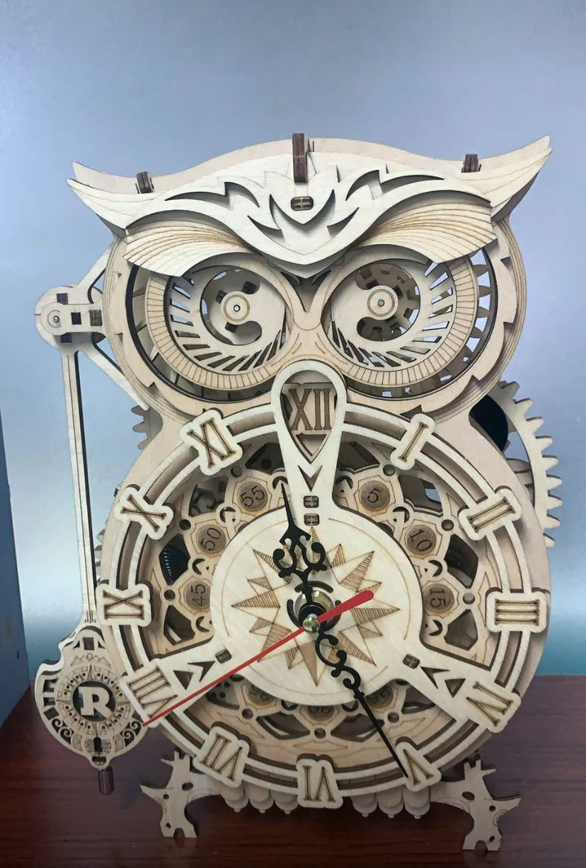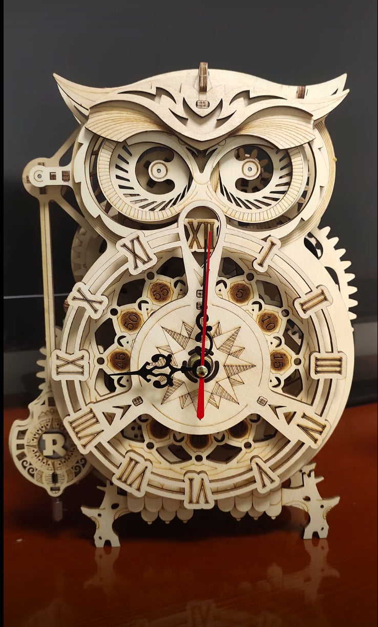 Robotime Rokr DIY Mechanical Owl Clock Model Kit Toys 3D Wooden Puzzles For Adults