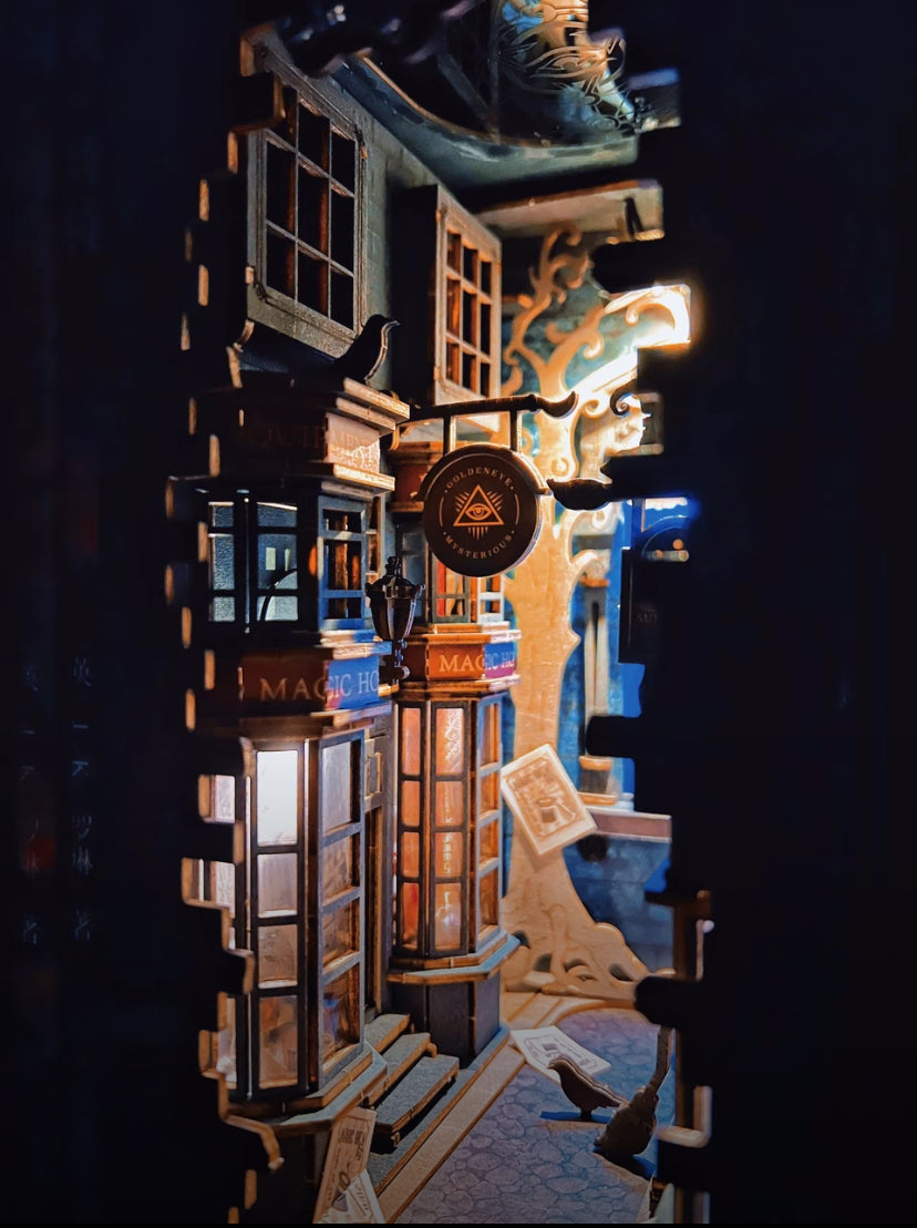 Rolife Magic House 3D Maison Miniature en Bois DIY Book Nook TGB03 Bienvenue dans le monde magique. Construisez un allié magique avec ce coin livre miniature DIY. Préparez-vous à disparaître dans la nuit avec un simple sort !
