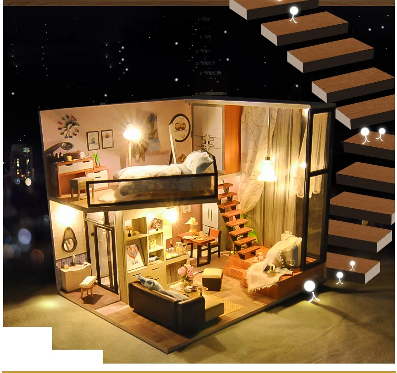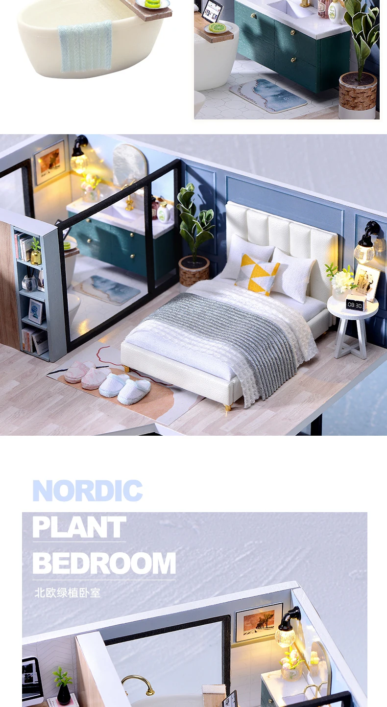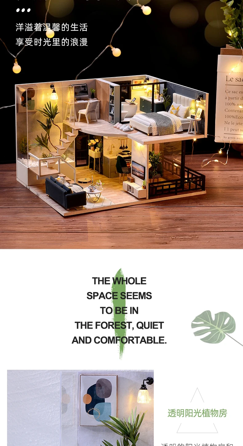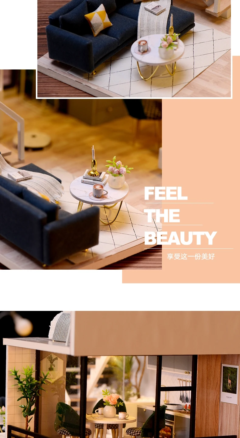CUTEBEE-DIY Wooden Doll House Kit, Modern Miniature Dollhouse with Furniture Lights, Magic Roombox Toys, Birthday Gift