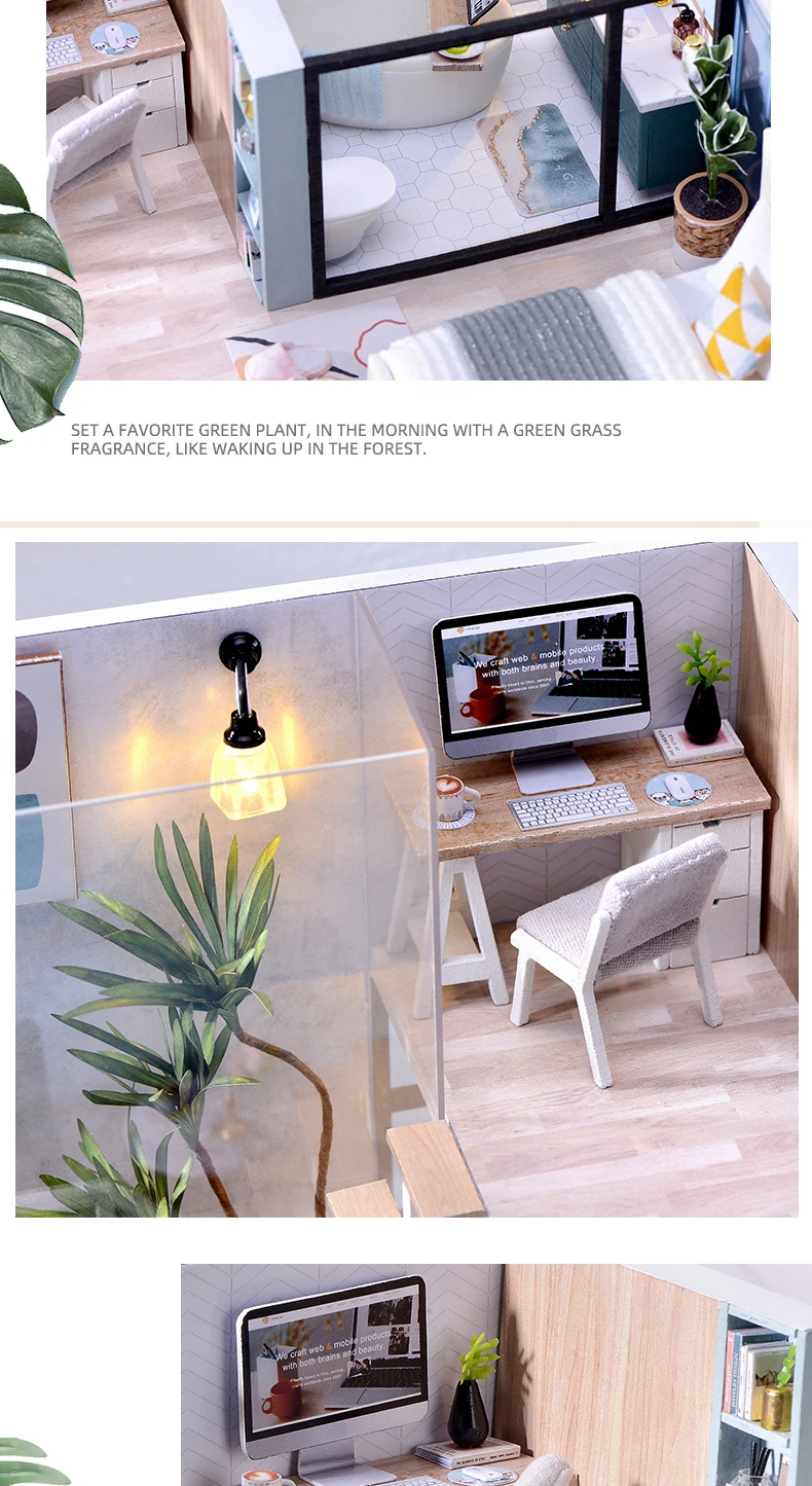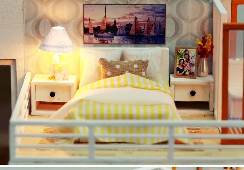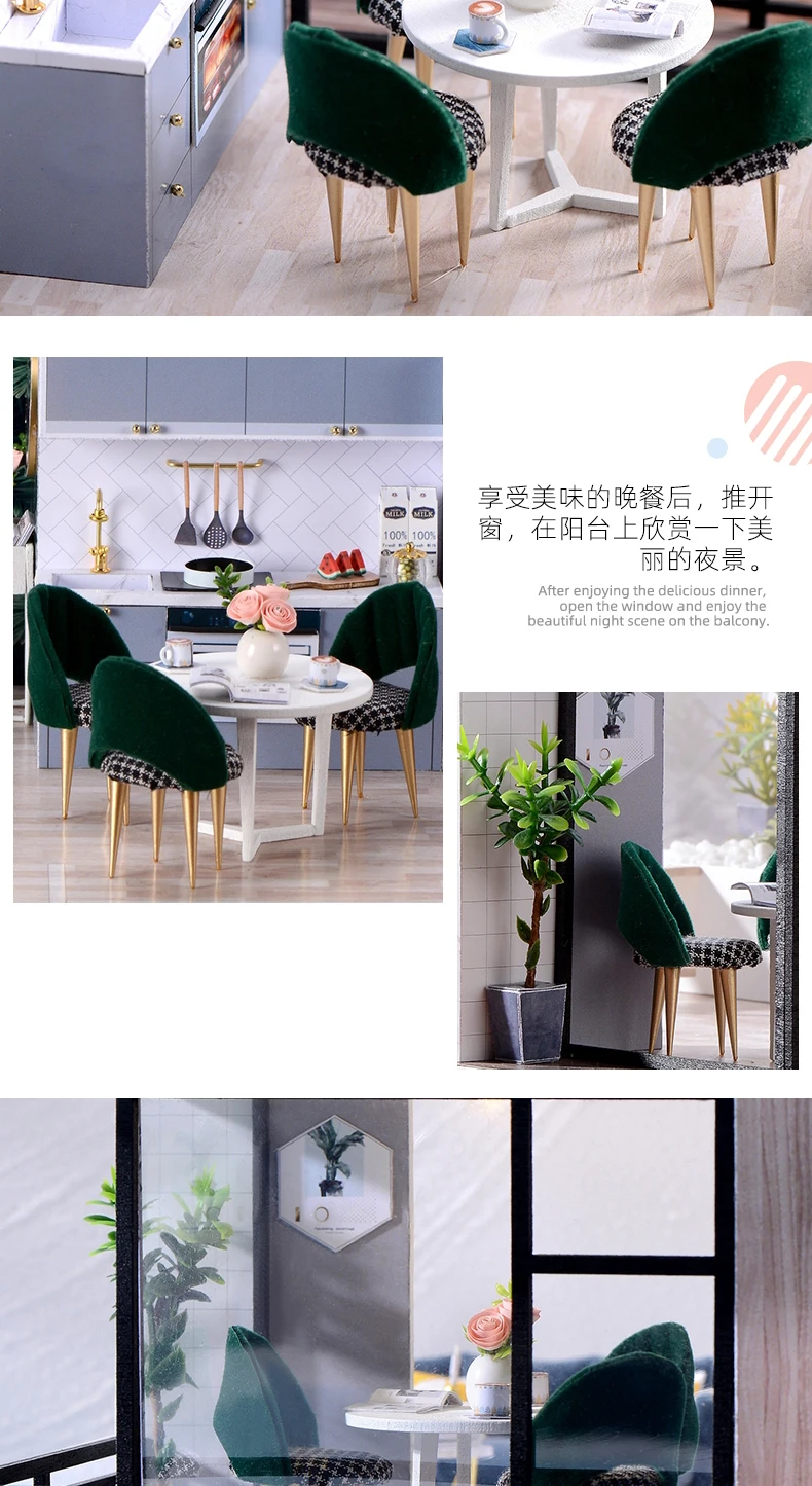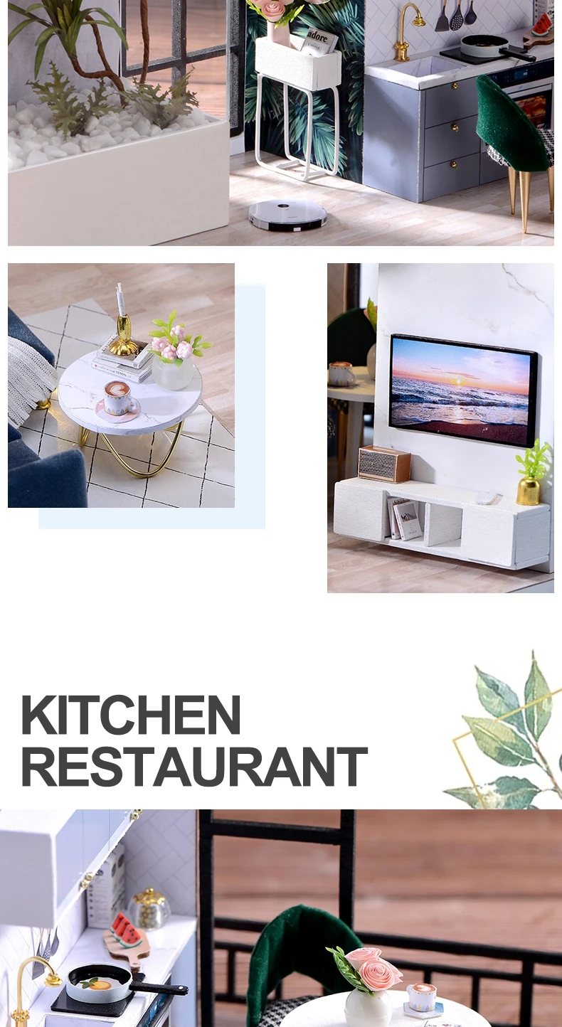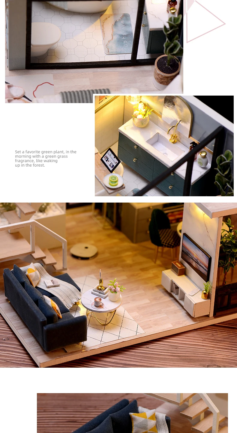 CUTEBEE-DIY Wooden Doll House Kit, Modern Miniature Dollhouse with Furniture Lights, Magic Roombox Toys, Birthday Gift
