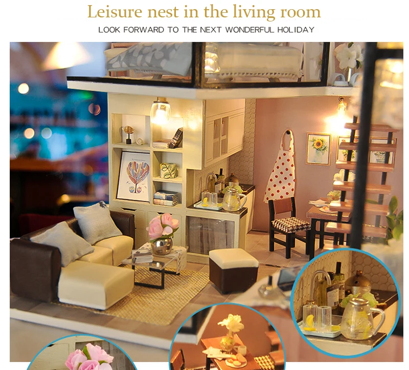 ✿ Photo shows finished dollhouse, but you receive are spare parts, need build by yourself.